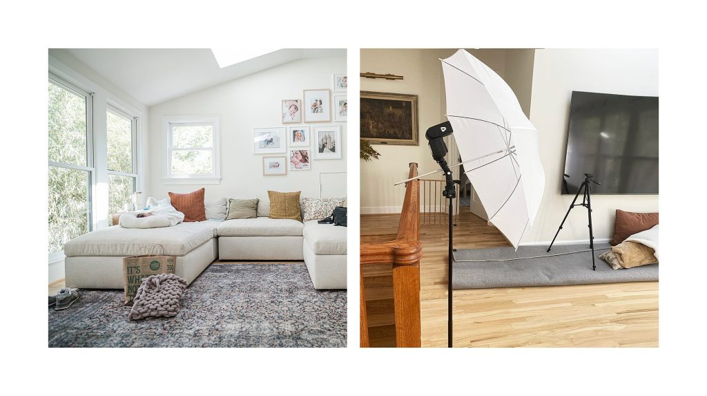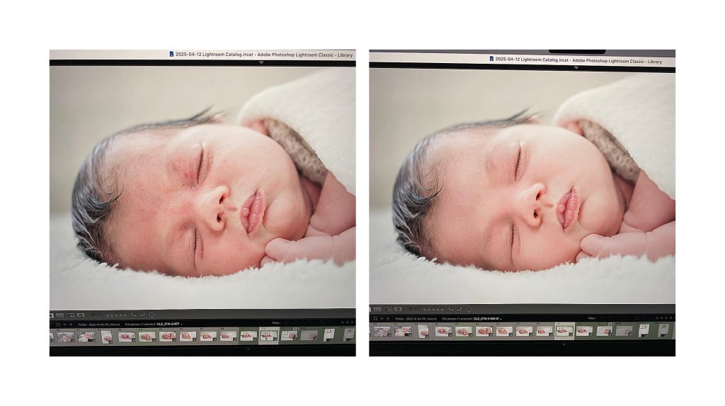 This simple newborn photography lighting setup allowed me to maintain the calm, natural atmosphere of the room while ensuring the baby’s features were beautifully illuminated without harsh shadows.